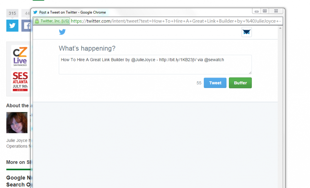 Click “add to queue” like you would directly in Buffer, and it will be added. You can change the text of the tweet if you so choose as well. Just be mindful that not every site provides this option.