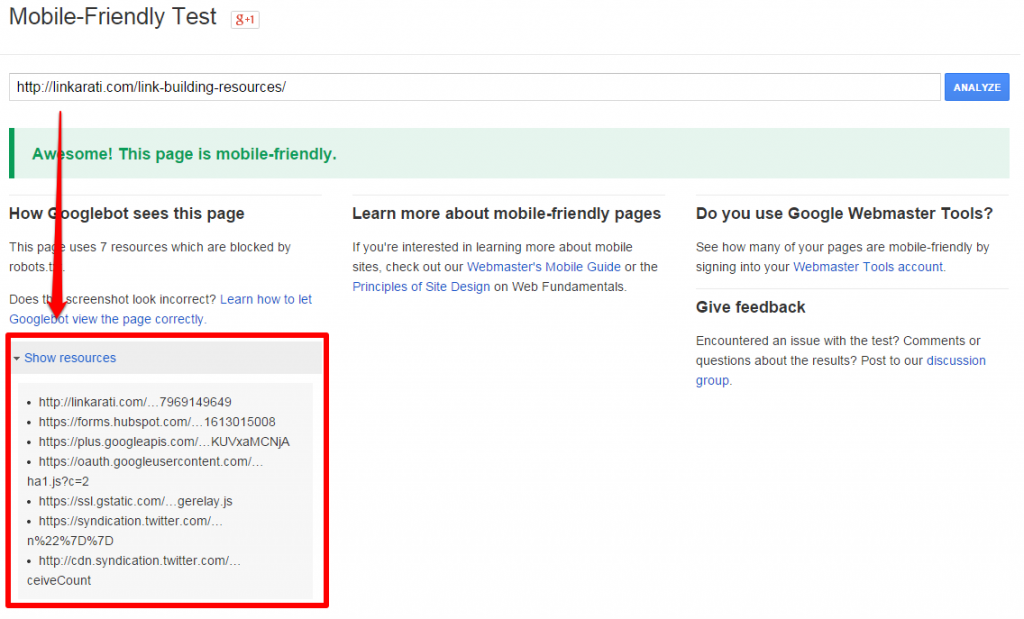 We’ll use Linkarati’s Link Building Resources Page as an example for this tutorial. This is a great page to test; although Linkarati is designed mobile-friendly, the Link Building Resources Page has many unique elements which may hinder the page’s mobile-friendliness.