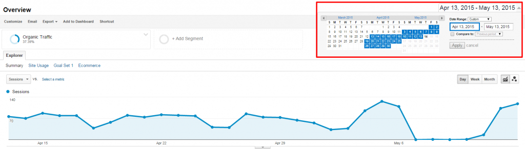 Now that we’ve confirmed we’re still receiving mobile organic traffic, we should compare it with our data prior to Google’s Mobile Update to determine if there has been an increase or dip.