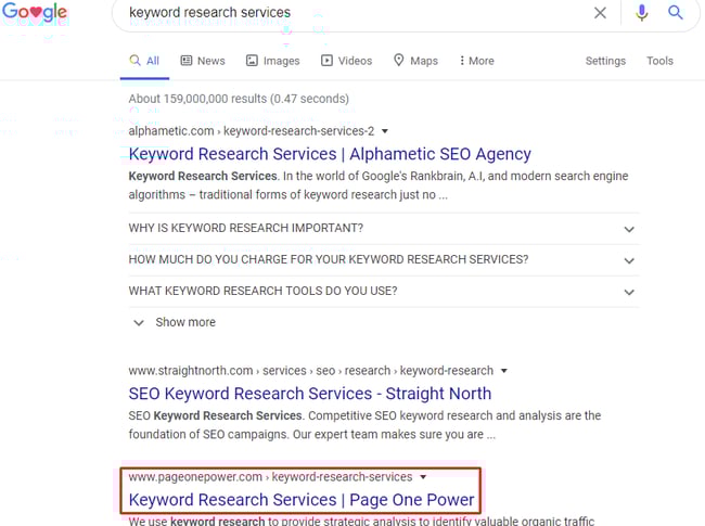 At Page One Power, we offer keyword research services. While this is not one of our primary services, we still feel this is a valuable service that we want potential partners to know about, so of course, we want our page to rank. But again, nobody wants to link to our page about our services.