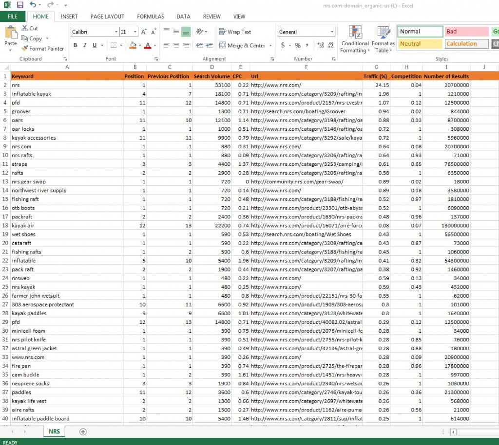 We can quickly see that there are a variety of phrases already sending significant traffic to NRS, but not ranking on page one. These phrases include: