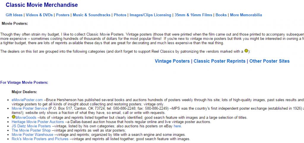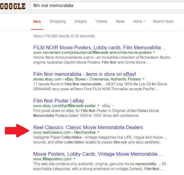 Yeah, so this Reel Classics resource page states that it hasn’t been updated since 2011, but it’s the fourth listing in the SERPs for “film noir memorabilia”. And I’m a ‘major dealer’ of vintage movie posters, so I’d still give it a shot.