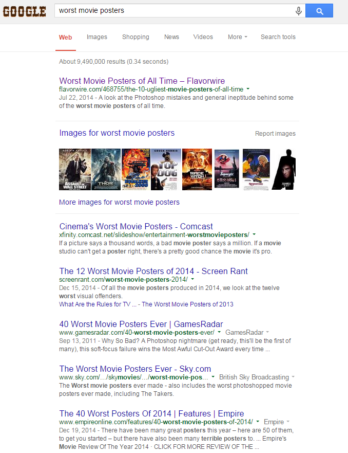 Just because a post doesn't say what you want it to, doesn't mean you can't utilize it. This can even be done purposefully. I looked up “worst movie posters”. There are almost ten million results and the majority of them are super-legit sites.