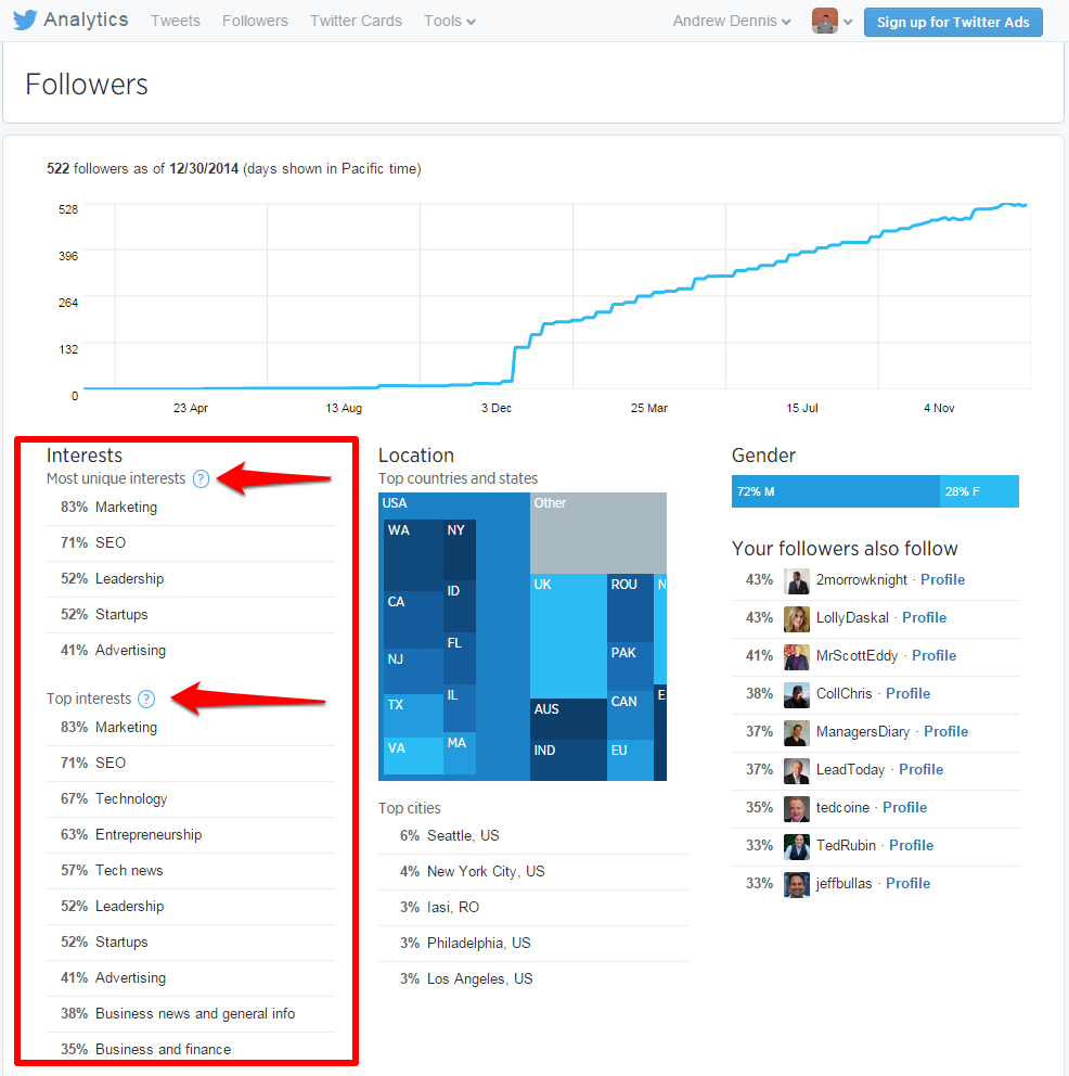 Location and Gender are not quite as useful as the interests data, but they can still provide some helpful insight into your Twitter following.
